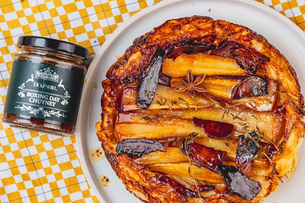 Equally delicious hot or cold, this Ham & Parsnip Tatin is an impressive way to serve leftovers from Christmas Day! The recipe is quick and simple to make but looks and tastes exceptional. The ham goes beautifully candied and stands up to the caramelised parsnips and layers of flaky pastry. Serve with blue cheese and bitter salad leaves for a light lunch or fresh dinner.