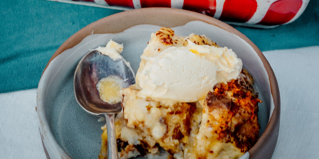 Festive panettone bread and butter pudding