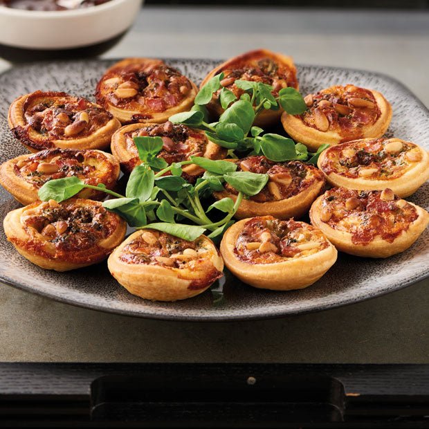 Step 3 Half fill each case with some torn ham. Spoon the cheese mixture on top of the ham until full to just below the rim of the tart case.
