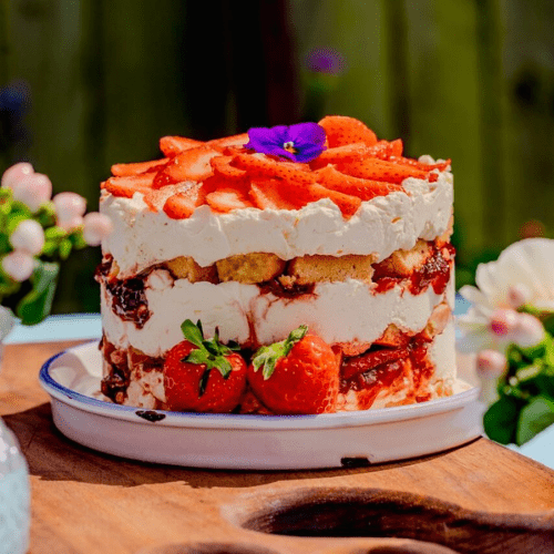 Step 3 Place the shortbread in a layer at the bottom of the tin. Smother it in a layer of thickened cream, pressing it down the crevasses. Spread over a layer of strawberry jam, followed by a layer of sliced strawberries. Continue to layer with shortbread, cream, strawberry jam and strawberries. Finish with a layer of cream, then neatly garnish with the remaining strawberries.
