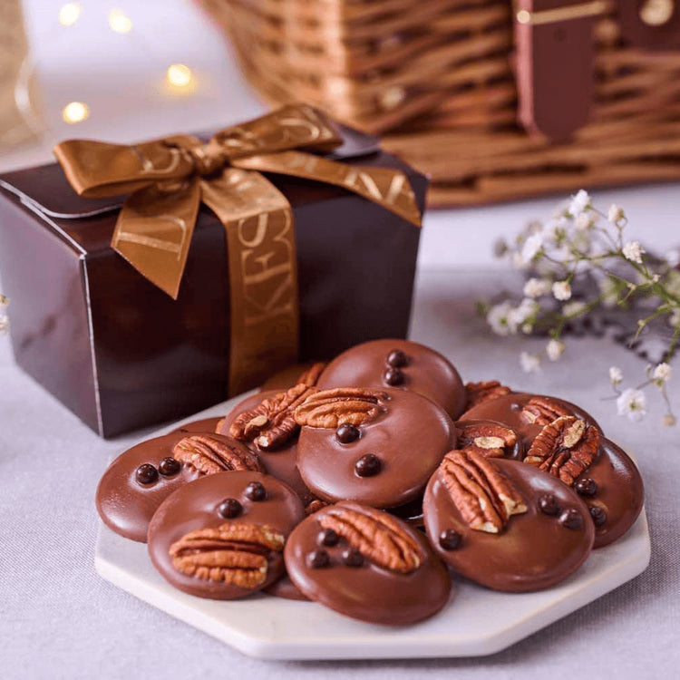£11.50Milk Chocolate, Crunchy Biscuit & Caramelised Pecan Mendiants
