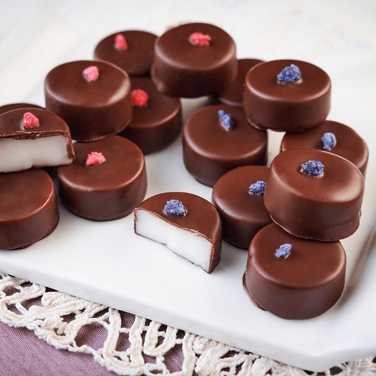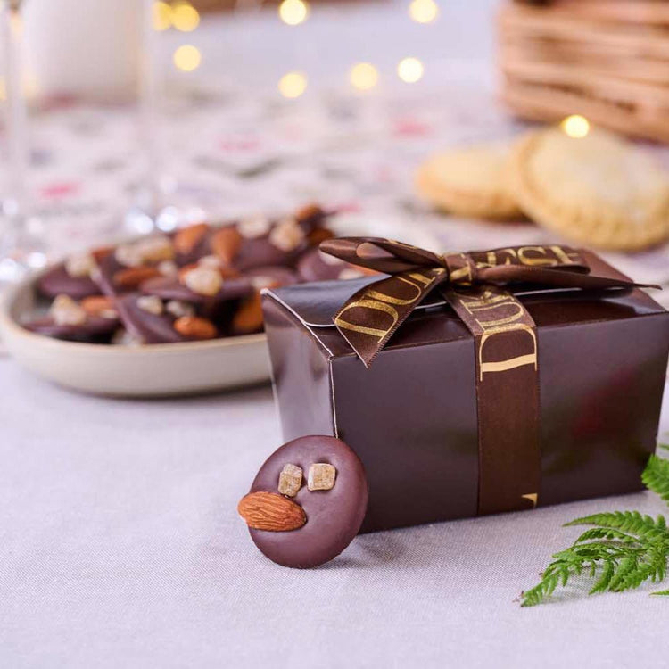 £11.50Dark Chocolate, Roasted Almonds & Ginger Mendiants