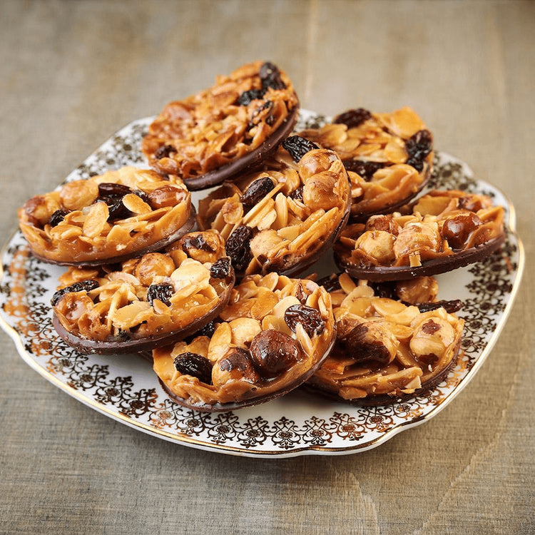 £11.50Milk Chocolate, Crunchy Biscuit & Caramelised Pecan Mendiants